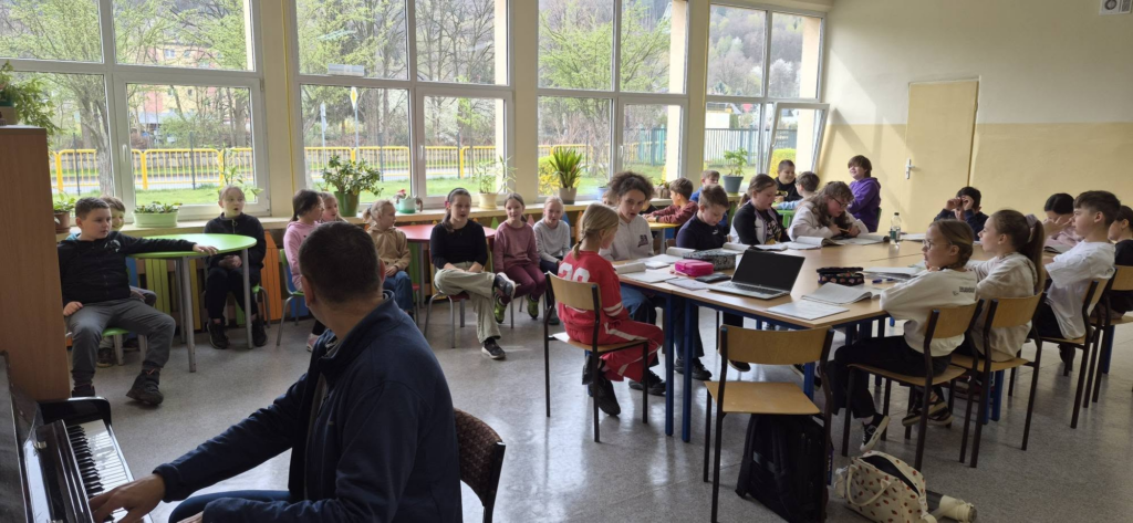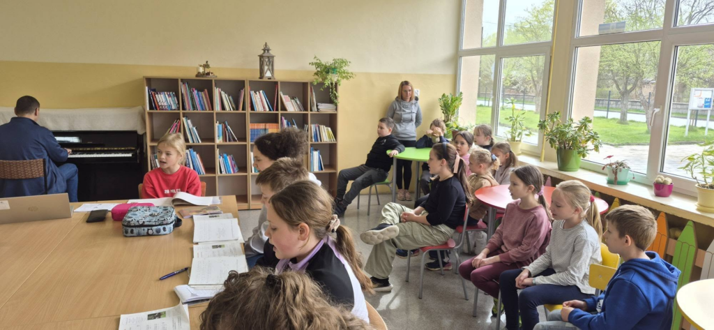 Dzisiaj trzecioklasiści mogli poznać jak i czego będą się uczyć na lekcji muzyki. Starsi koledzy podzielili się swoim doświadczeniem, a potem był wspólny śpiew przy akompaniamencie pianina w wykonaniu pana Wojciecha Zarównego.